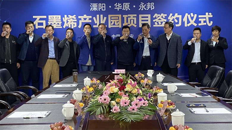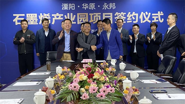 2020年10月13日,江蘇省溧陽市別橋鎮(zhèn)人民政府、江蘇永邦智能裝備科技有限公司與華原控股投資集團有限公司就溧陽市別橋鎮(zhèn)石墨烯產(chǎn)業(yè)園項目簽署投資協(xié)議及江蘇華永烯科技有限公司發(fā)起人協(xié)議。
